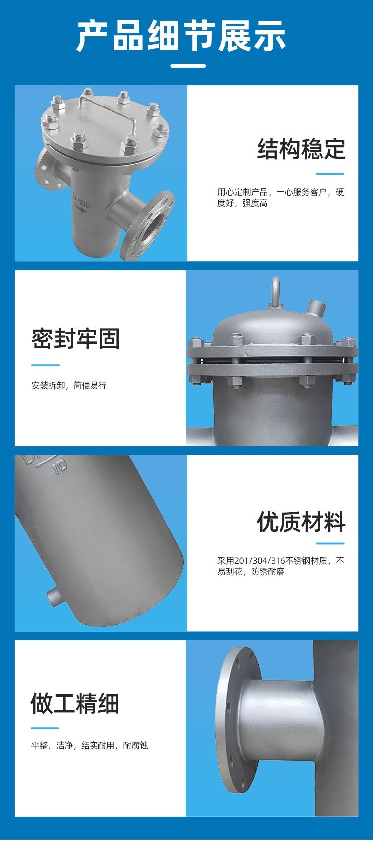 • 卅亞過濾 不銹鋼籃式過濾器 管道式快開除污器